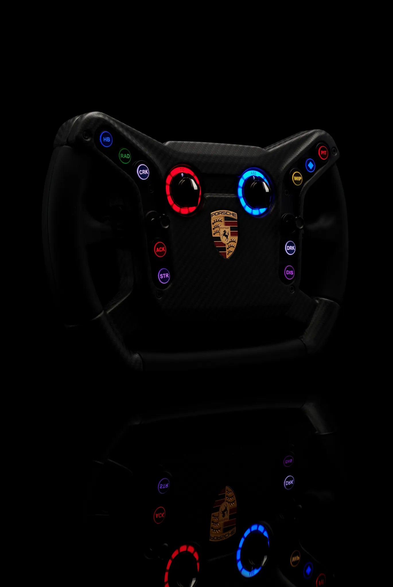 Porsche 911 Cup VPG SIM steering wheel: officially licensed, aluminum, configurable controls, RGB, 50.8 mm QR. Performance and authenticity for sim racing.
