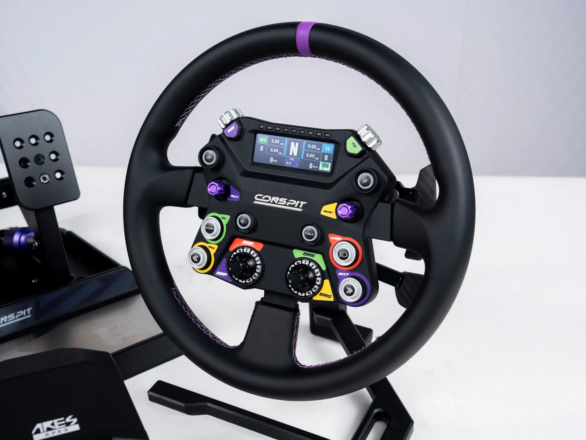 Le cœur du bundle est la base Direct Drive ARES APEX 8 Nm, développée autour d’un moteur à double processeur et d’un encodeur 21 bits. Résultat : un retour de force propre, précis, sans cogging, capable de restituer fidèlement les dynamiques du véhicule. Le slip ring renforcé assure une transmission de données continue, stable et sans distorsion même sur le long terme.