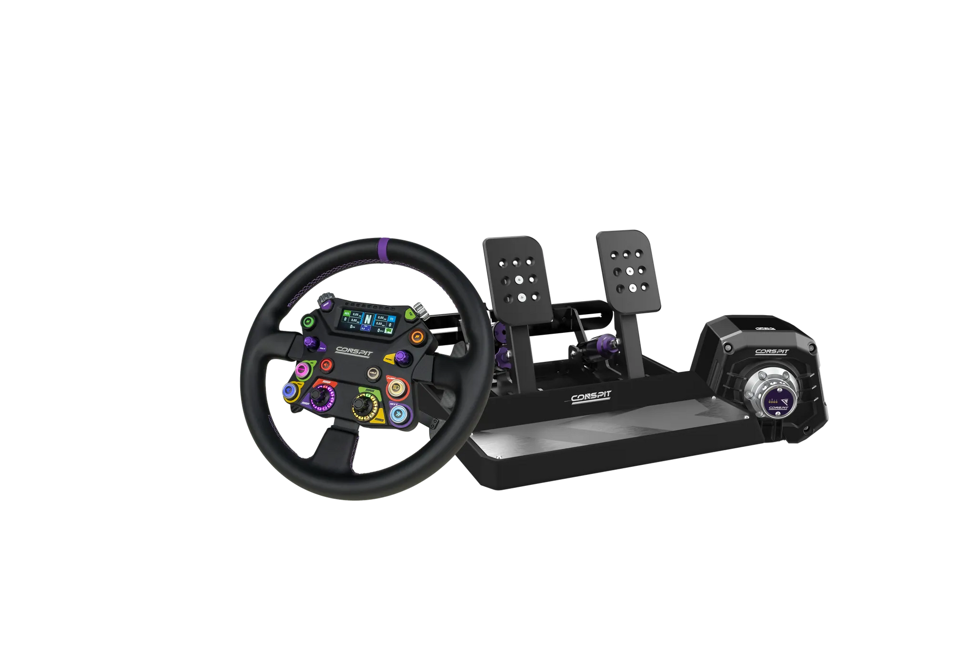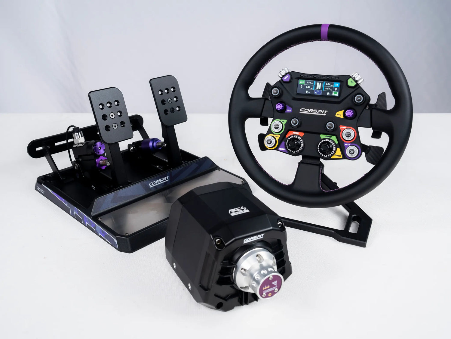 Bundle CONSPIT APEX : base Direct Drive 8 Nm, volant 310APEX, QR CDR et pédalier CPP APEX. Pack Sim Racing complet pour précision, immersion et performance.