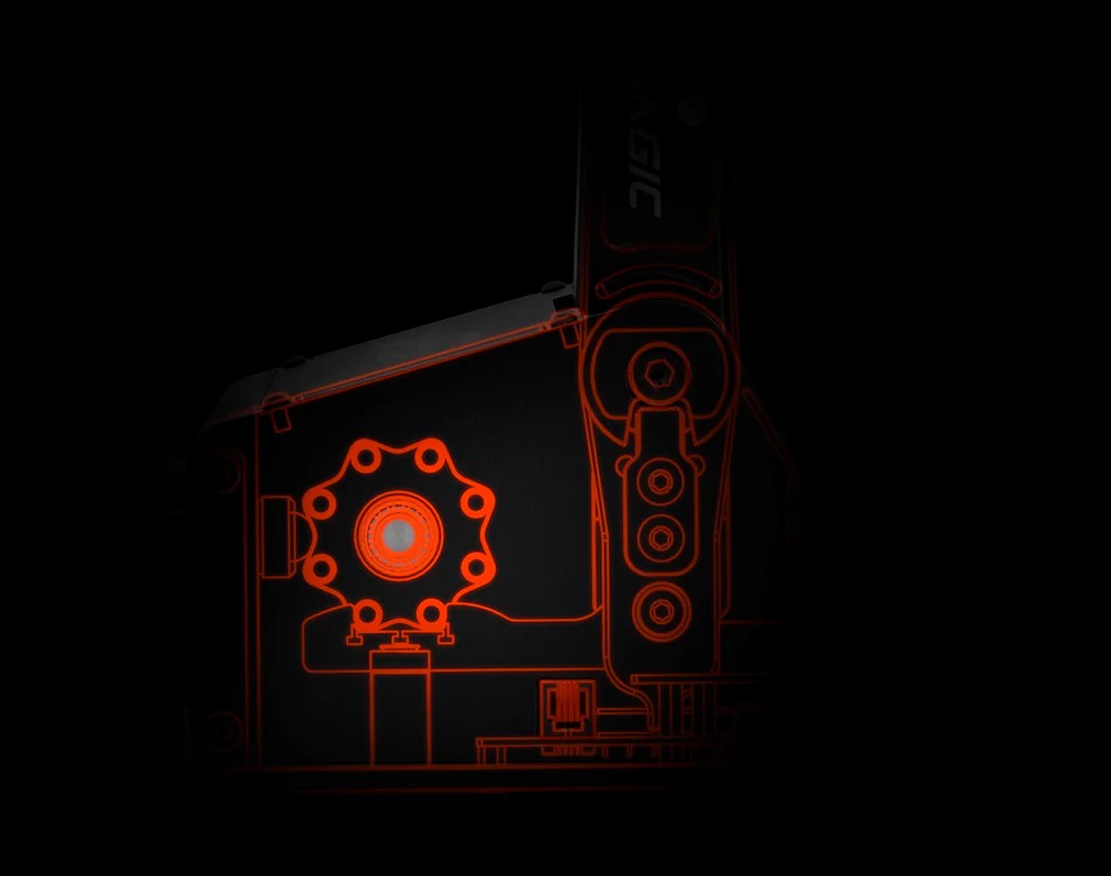 - Mécanisme à engrenage planétaire qui fournit un feedback net et précis.