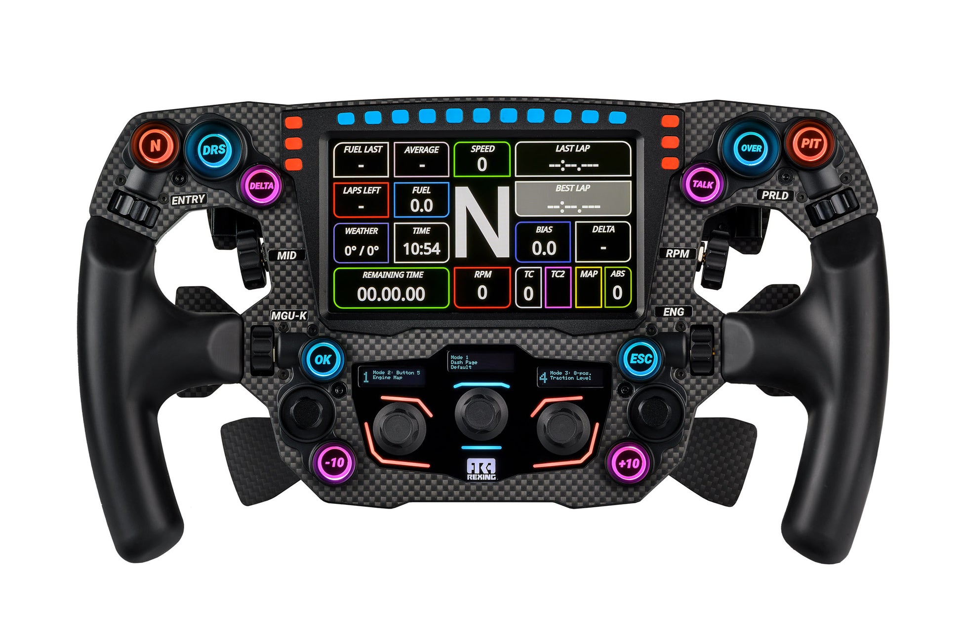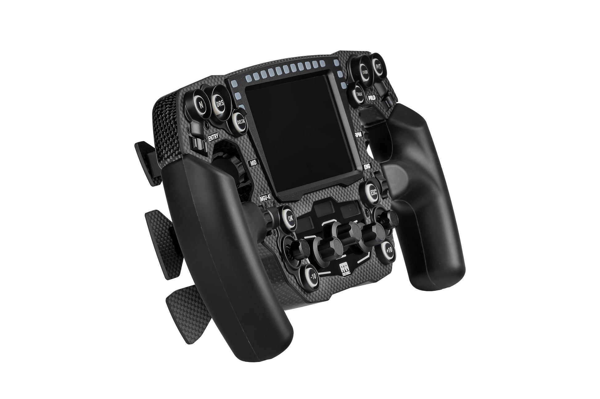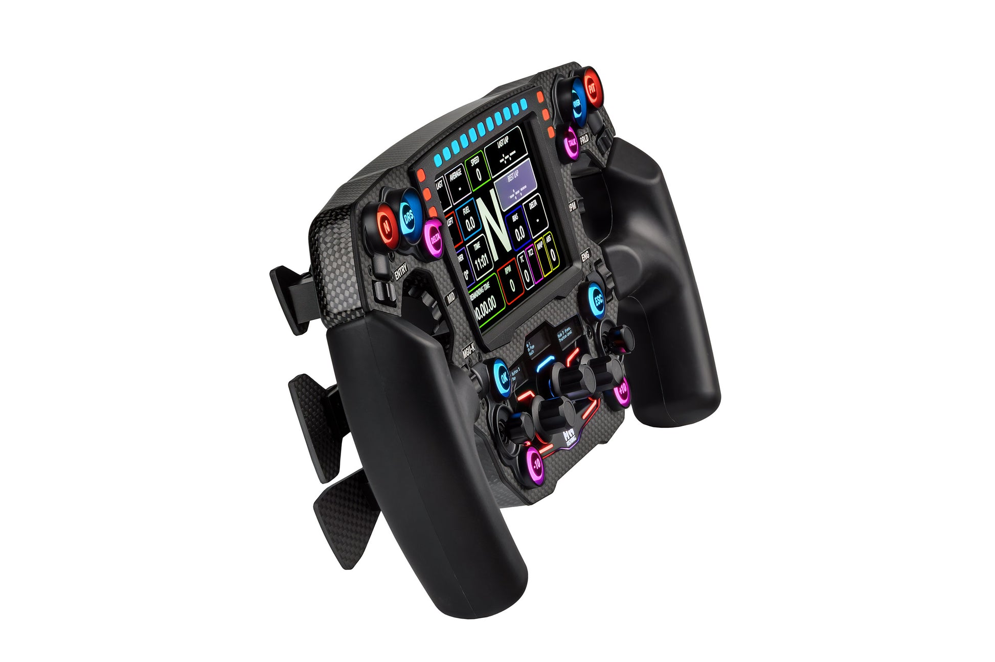Le volant est équipé d’un écran tactile 5″, de trois écrans OLED, de 10 boutons RGB et de 6 encodeurs rotatifs — le tout entièrement configurable via SimHub, pour un contrôle total de vos fonctions et de votre télémétrie.