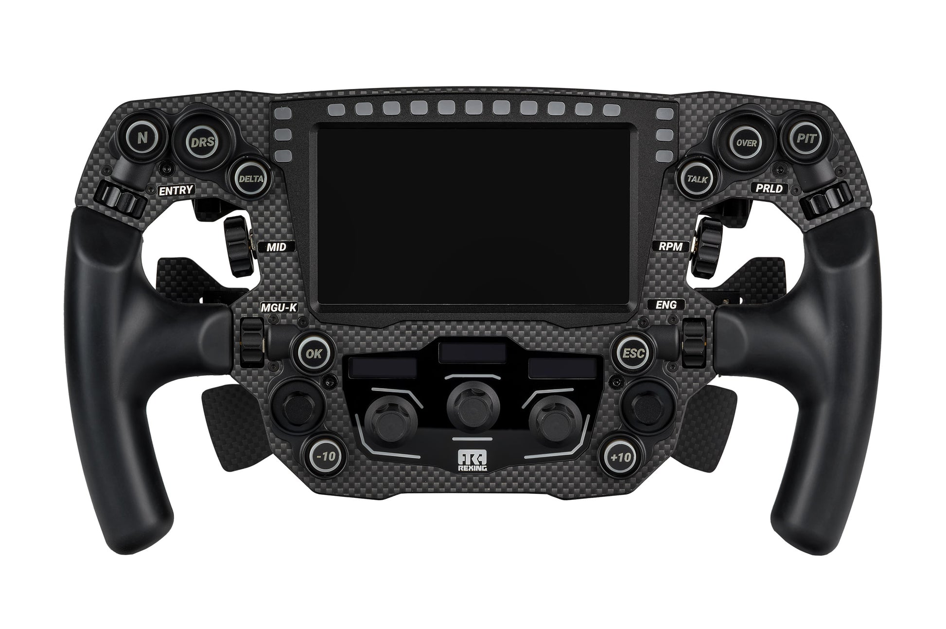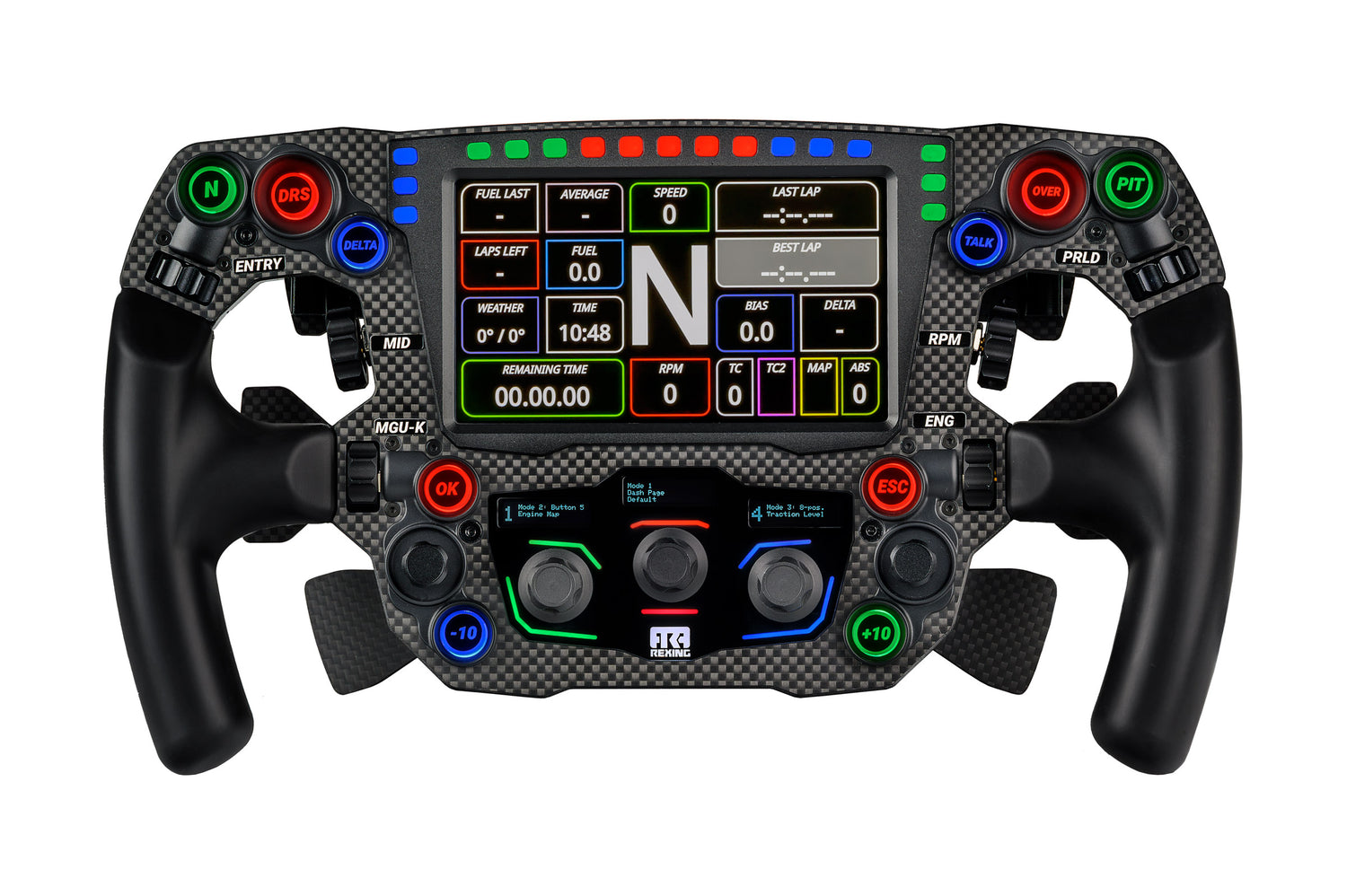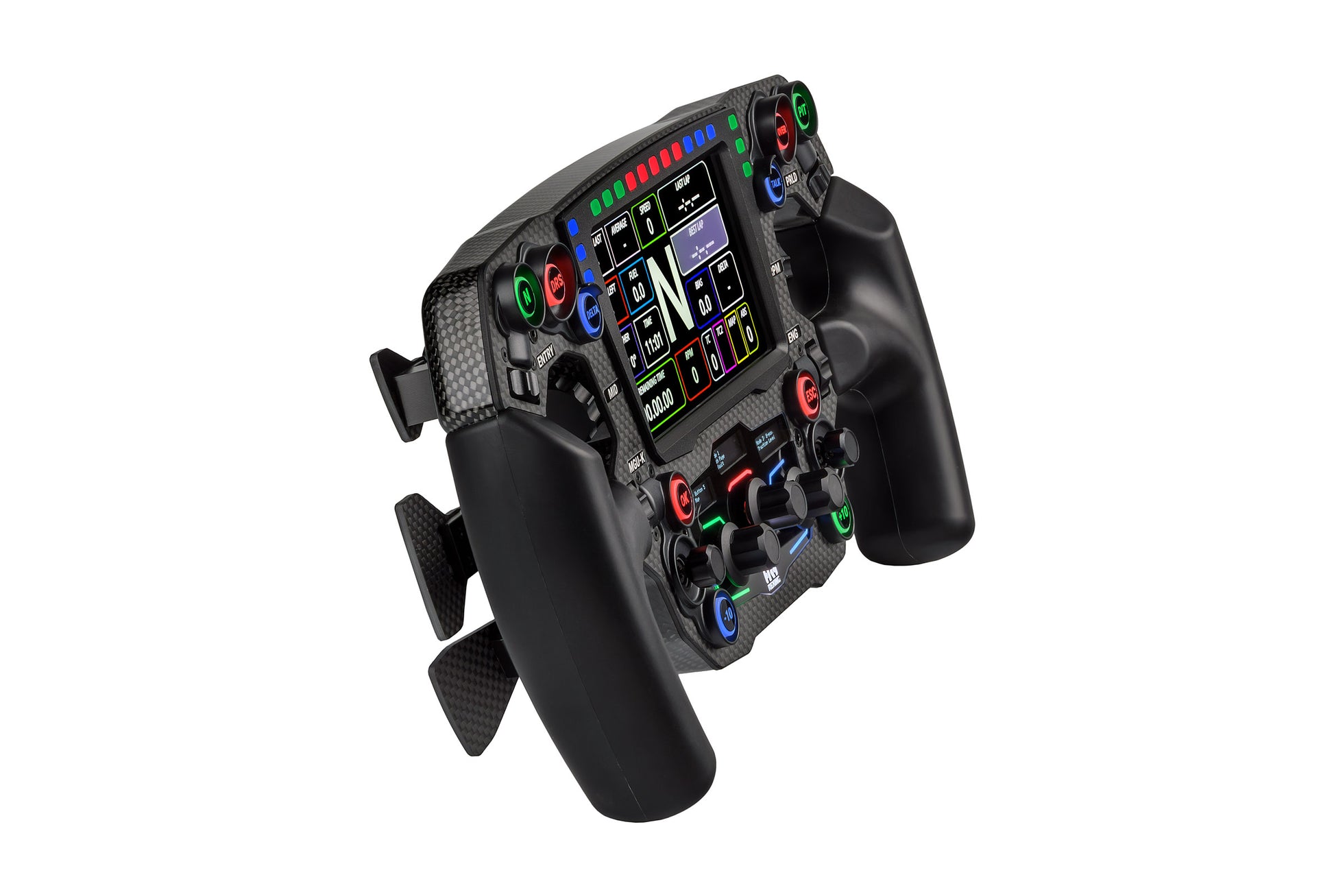 Le volant est équipé d’un écran tactile 5″, de trois écrans OLED, de 10 boutons RGB et de 6 encodeurs rotatifs — le tout entièrement configurable via SimHub, pour un contrôle total de vos fonctions et de votre télémétrie.