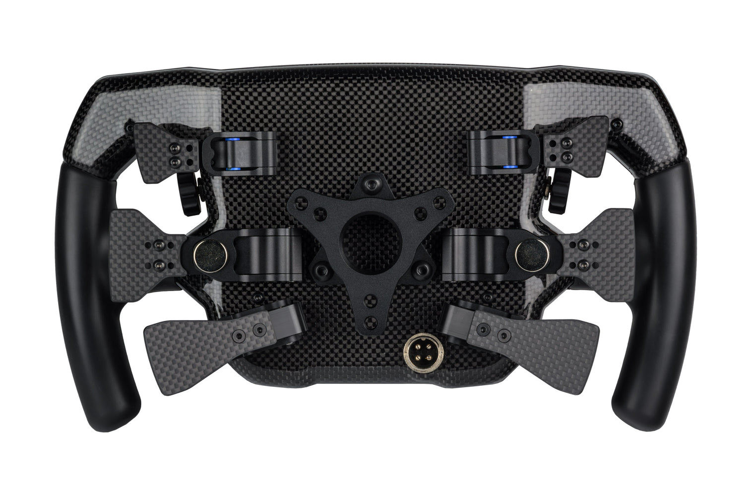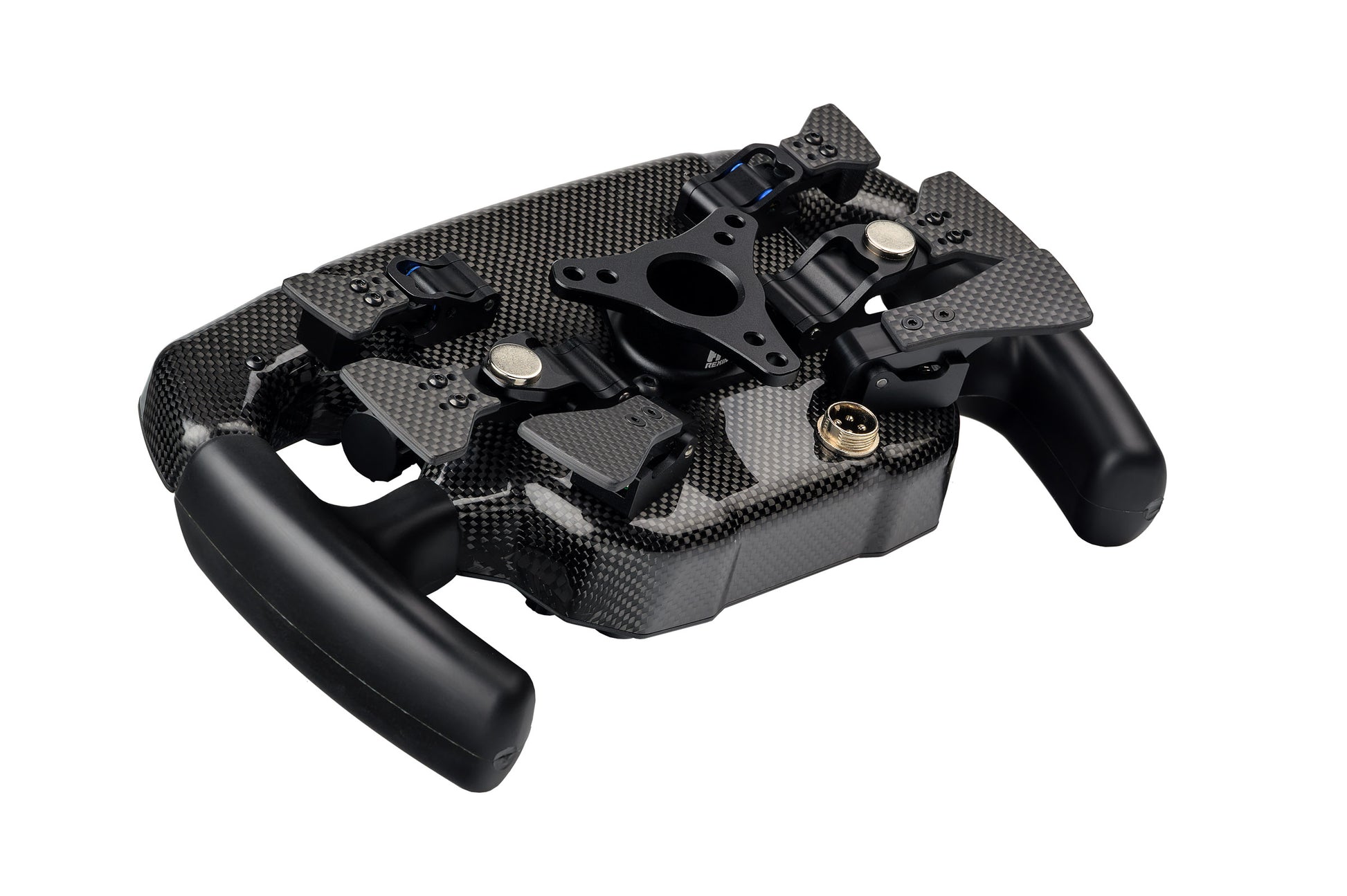Le hub en aluminium accepte les Quick Releases 50,8 mm et 70 mm, ce qui rend le Mayaris 2 compatible avec la majorité des bases Direct-Drive haut de gamme (Simucube, Asetek, Fanatec, etc.). L’USB spiral fourni garantit une bonne connexion, et l’architecture permet une personnalisation poussée selon vos besoins.